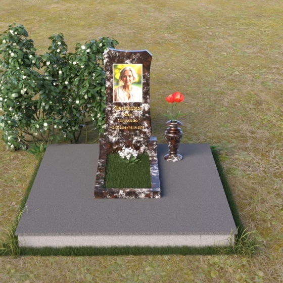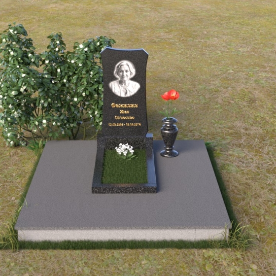 Форма стелы ПВ 020 идеально подходит для размещения портрета усопшего. Благодаря скругленным линиям и отсутствию острых углов, изображение будет выглядеть гармонично и естественно. Портрет может быть выполнен в виде гравировки или фотокерамики. Золотое тиснение имени, отчества и дат жизни на темном фоне гранита выглядит особенно торжественно и благородно, привлекая взгляд и подчеркивая важность информации. Для того, чтобы добавить индивидуальности, можно дополнить композицию вазой для цветов, выполненной в том же стиле, что и сам памятник. Ваза из гранита или мрамора не только украсит место захоронения, но и станет символом вашей заботы и любви. Расположение вазы рядом со стелой позволит создать завершенную и гармоничную композицию, подчеркивающую красоту и величие ритуального изделия.