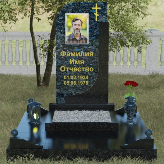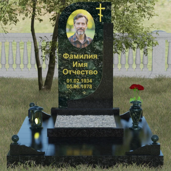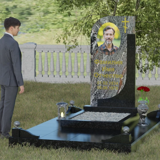 Кому подойдет: Данная модель является универсальной и гармонично впишется в мемориальный комплекс как для мужчины, так и для женщины. Асимметричная форма с плавным изгибом придает памятнику определенную легкость, что часто выбирают для оформления захоронений матерей или жен. В то же время строгая вертикальная колонна и золоченая символика делают его подходящим для увековечивания памяти отца, брата или главы семейства. Это выбор тех, кто ценит эстетику минимализма, надежность натуральных материалов и хочет подчеркнуть преемственность поколений и крепость семейных уз.