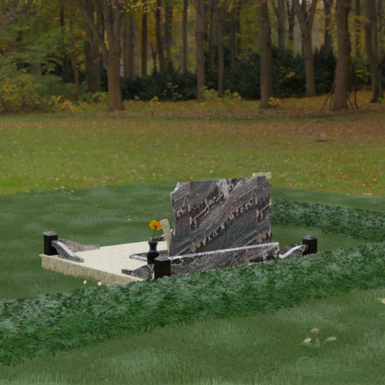 Горизонтальная ориентация стелы и массивная ограда символизируют вечный покой, незыблемость семейных уз и защиту. Светлые вставки на фоне темного гранита олицетворяют надежду и светлую память, которая побеждает тьму забвения. Это выбор для тех, кто хочет передать силу характера, мужество и достоинство почивших.