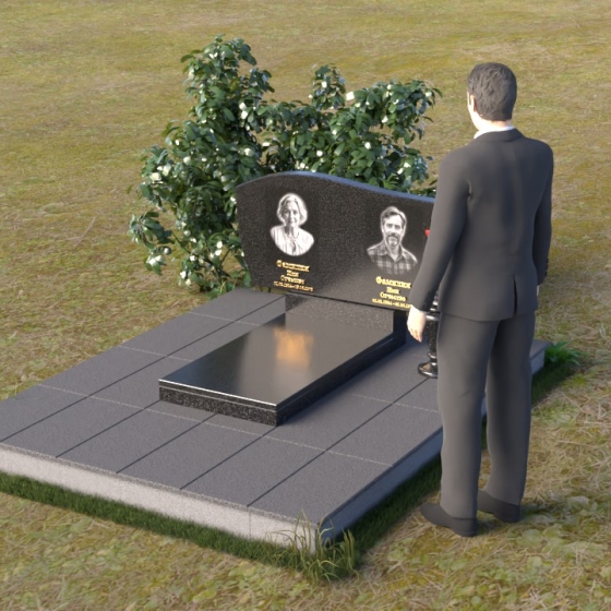 Оформление: Для этой формы стелы рекомендуется выбирать портреты с четкими контурами, чтобы гравировка максимально точно передала образ усопшего. Имена и даты рождения можно разместить под портретами, используя элегантный шрифт с золотым напылением, что придаст ритуальному изделию дополнительную торжественность.